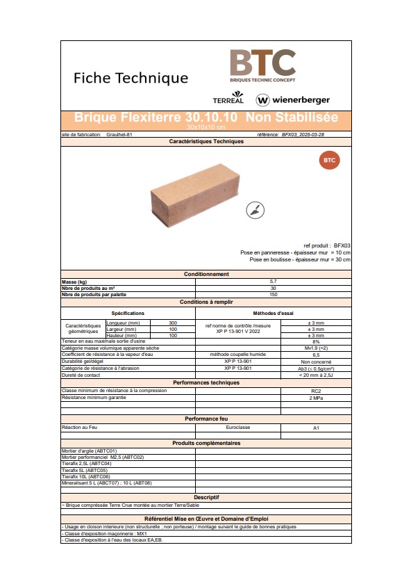 Fiche Technique BTC FLEXITERRE 30x10x10cm Non-Stabilisée